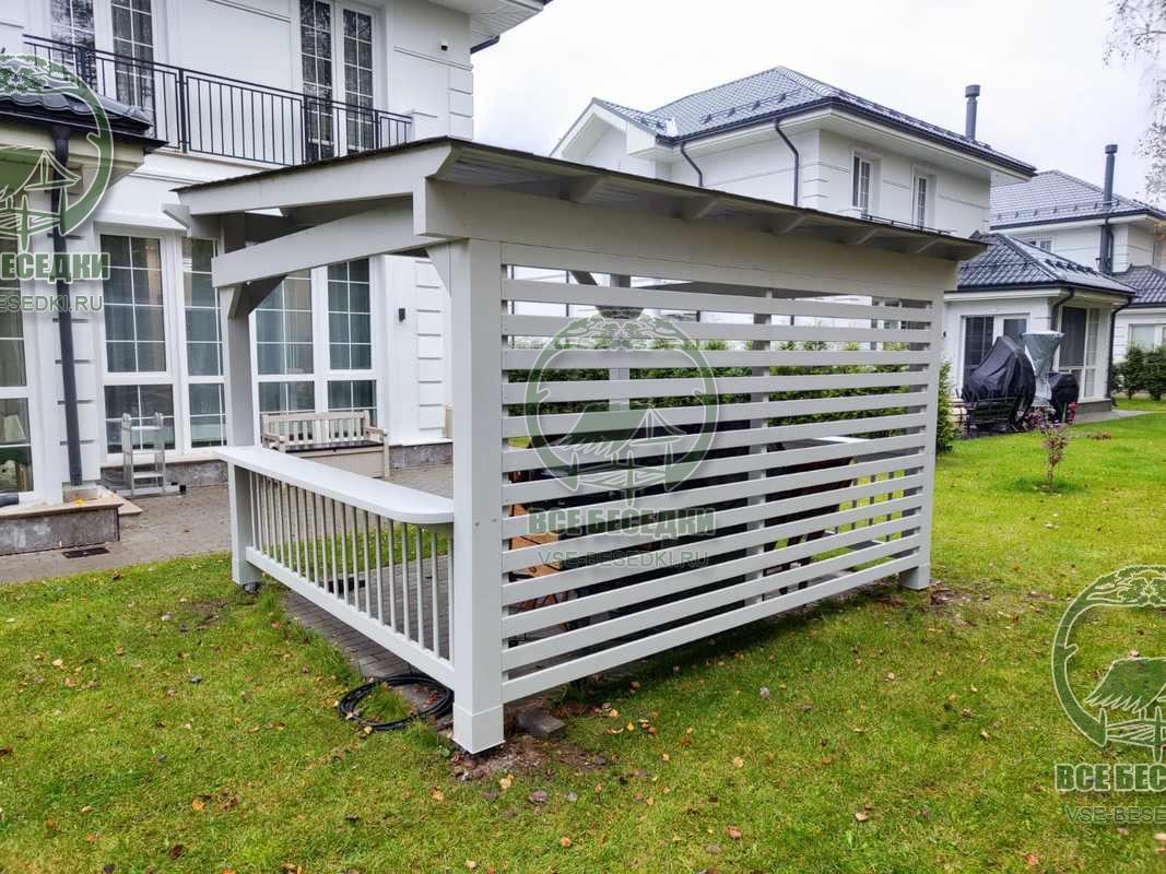 Беседка-навес для барбекю из дерева, 3,5×3 м, белая