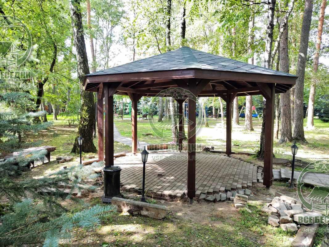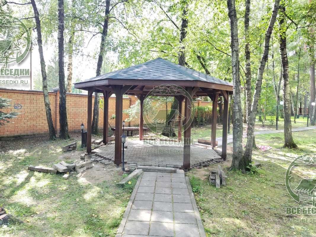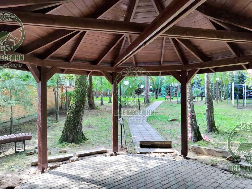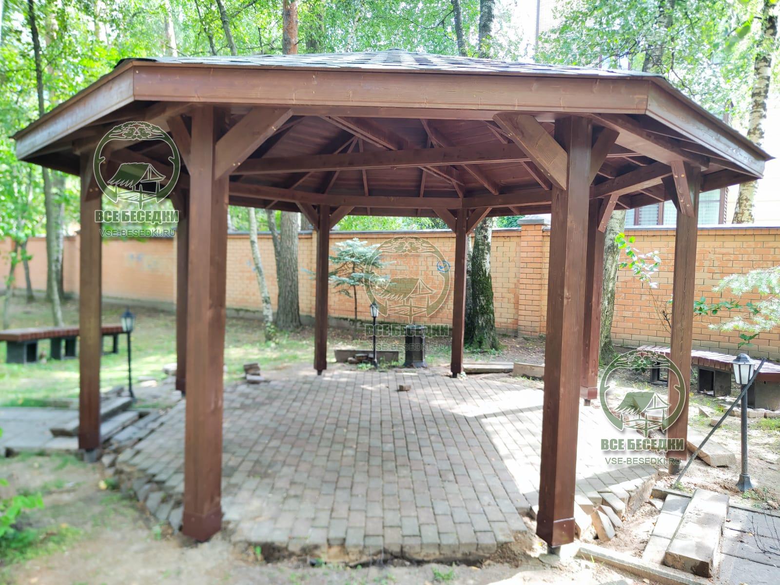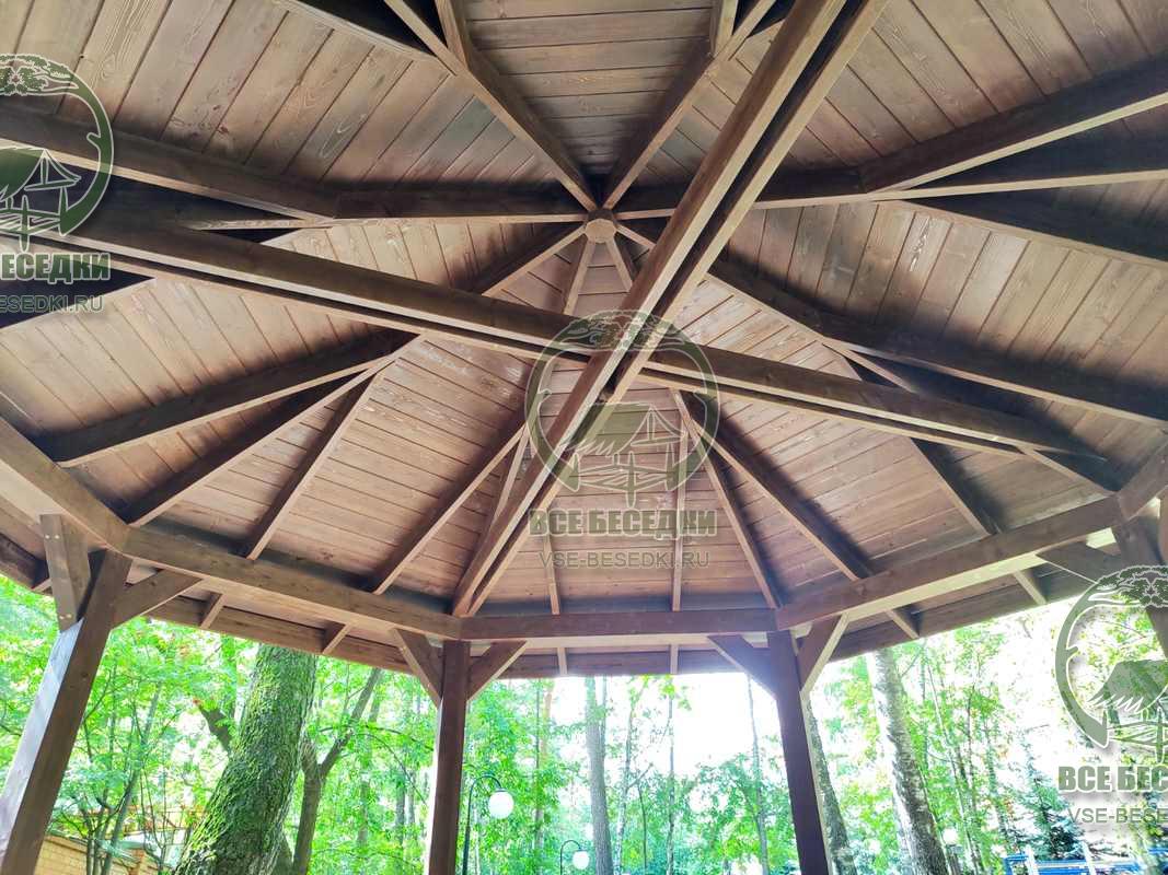 Восьмигранная деревянная беседка, диаметр 5 м, открытая, для парка или сада